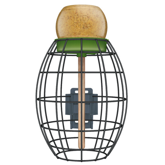 Lona V1 is een ovale voederkooi en biedt de kleine tuinvogels bescherming tegen hun natuurlijke vijanden zoals katten en grotere vogels. Ze kunnen rustig en ongestoord foerageren. Alleen kleine tuinvogels zoals mezen, vinken, mussen en soortgenoten passen door de openingen. Via de verticale trapezestick kunnen ze vervolgens naar de heerlijke pindakaas klimmen. Fantastisch om te zien!