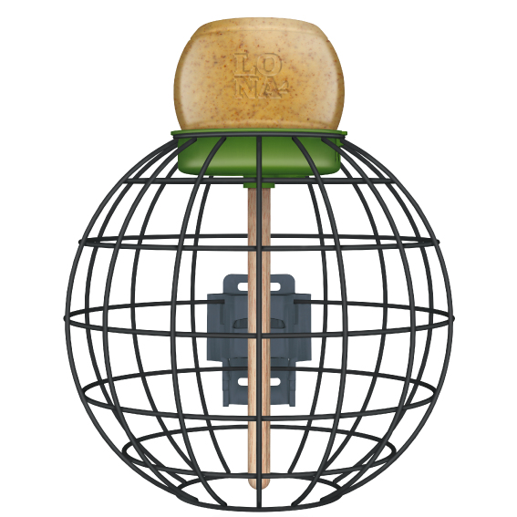 Lona V1 is een ronde voederkooi en biedt de kleine tuinvogels bescherming tegen hun natuurlijke vijanden zoals katten en grotere vogels. Ze kunnen rustig en ongestoord foerageren. Alleen kleine tuinvogels zoals mezen, vinken, mussen en soortgenoten passen door de openingen. Via de verticale trapezestick kunnen ze vervolgens naar de heerlijke pindakaas klimmen. Fantastisch om te zien!