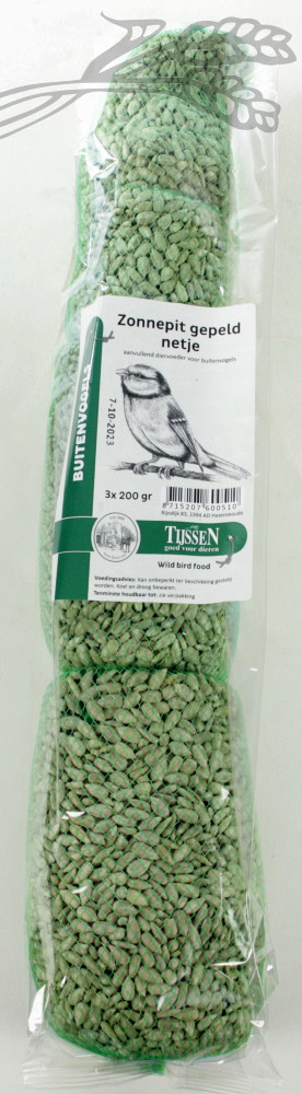 Netje Zonnepitten Gepeld is een welkome afwisseling op het menu van veel vogels. Als je het netje in je tuin hangt, kun je de buitenvogels goed bekijken wanneer zij hiervan eten.
