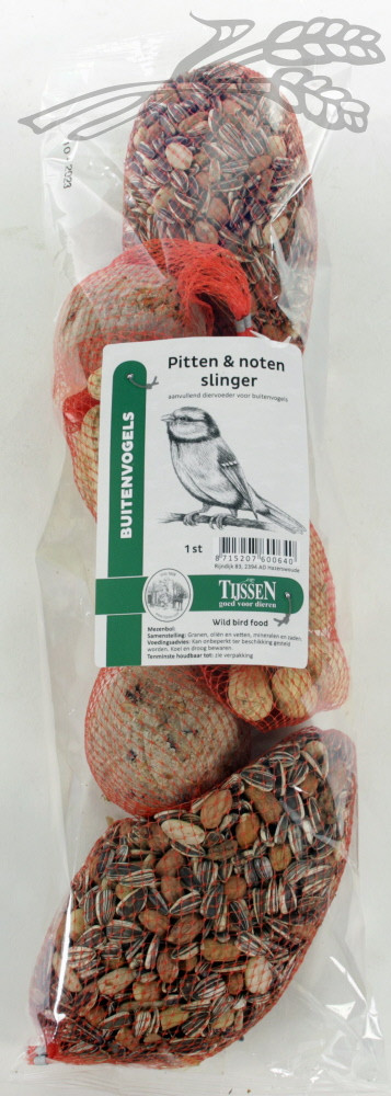 Slinger met pitten en noten, om buiten op te hangen.
