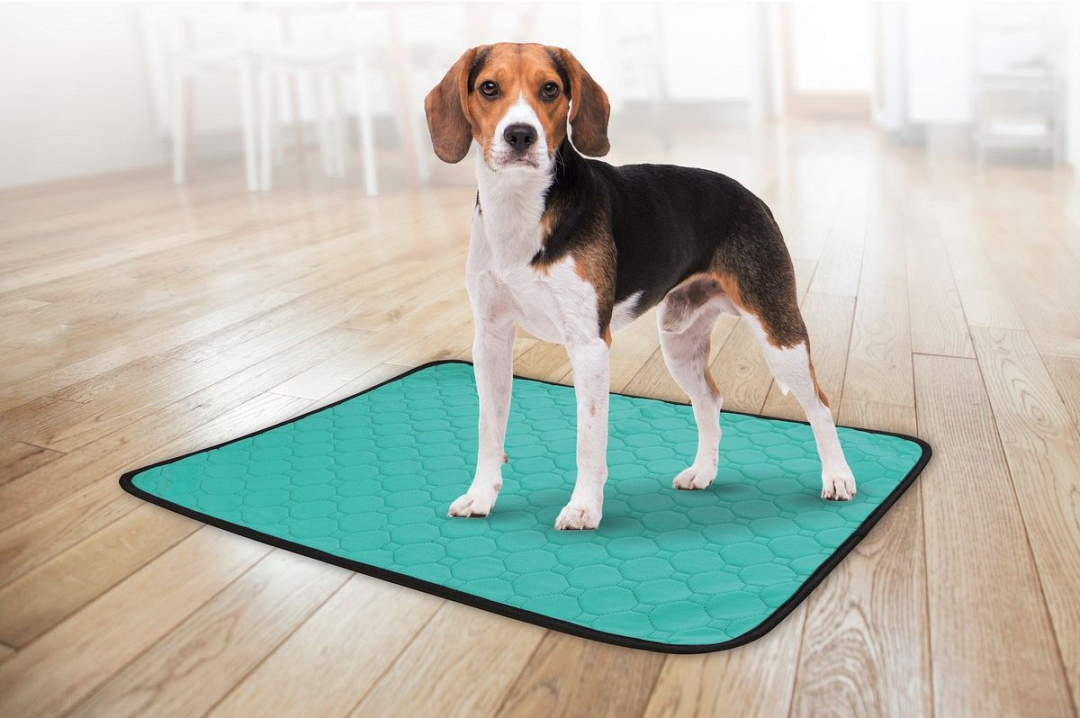 Plaats de mat op een vaste plaats en leer je hond hier zijn behoefte te doen.