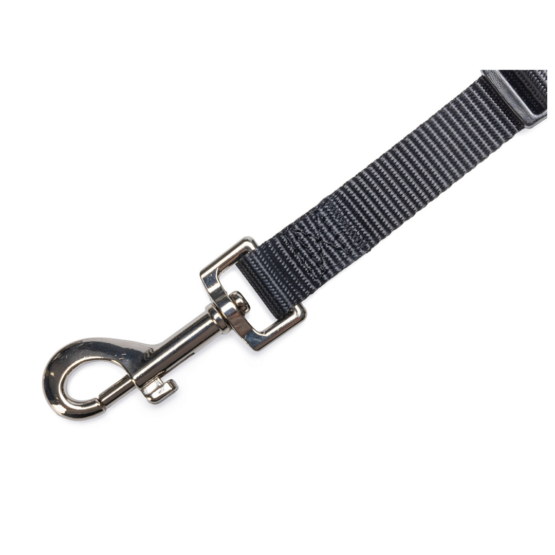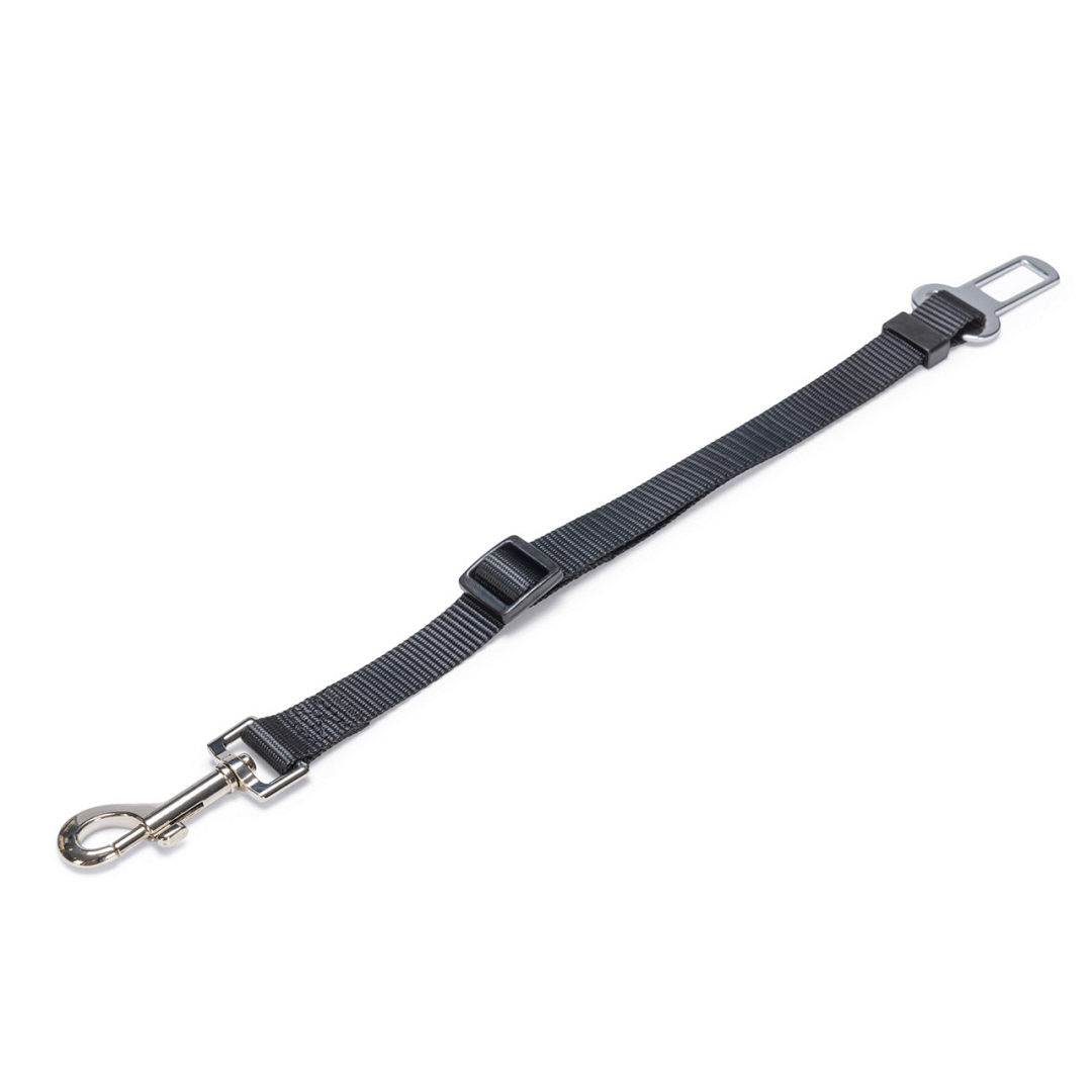 Met de Beeztees autogordel kun je jouw hond veilig in de auto vervoeren. Door middel van het verbindingsstuk klik je deze hondenautogordel vast in de gordelhouder. Vervolgens maak je de musketonhaak vast aan het hondentuig. De autogordel in combinatie met het hondentuig zorgt ervoor dat jouw hond zich niet vrij door de auto kan bewegen. Zo zijn jullie klaar voor een veilige rit! Let op, dat je de gordel niet bevestigt aan de hondenhalsband. Hierdoor kan er namelijk te veel spanning op de keel van jouw hond komen te staan. De gordel is gemaakt van stevig nylon en traploos verstelbaar.