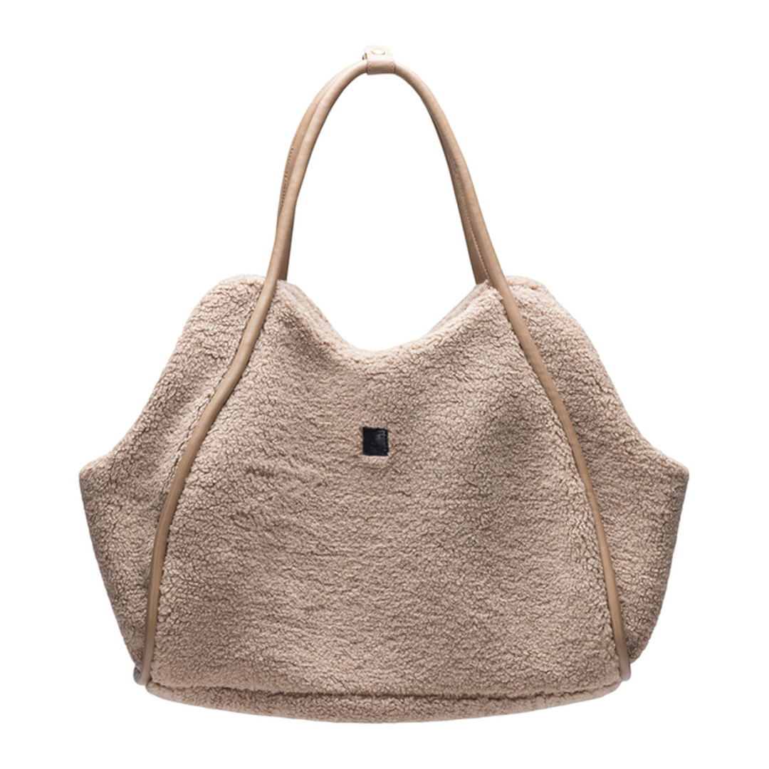 Trendy hondendraagtas met teddy buitenkant en vulling van pluche.