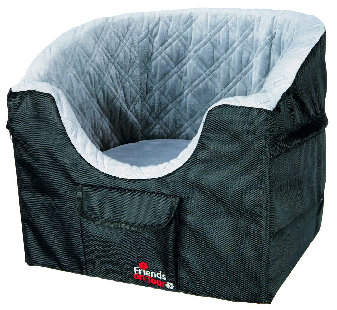 Veilige autostoel voor kleine honden. Zeer comfortabel dankzij de pluchen binnenzijde. Met geïntegreerde riem en uitsparing voor autogordel.