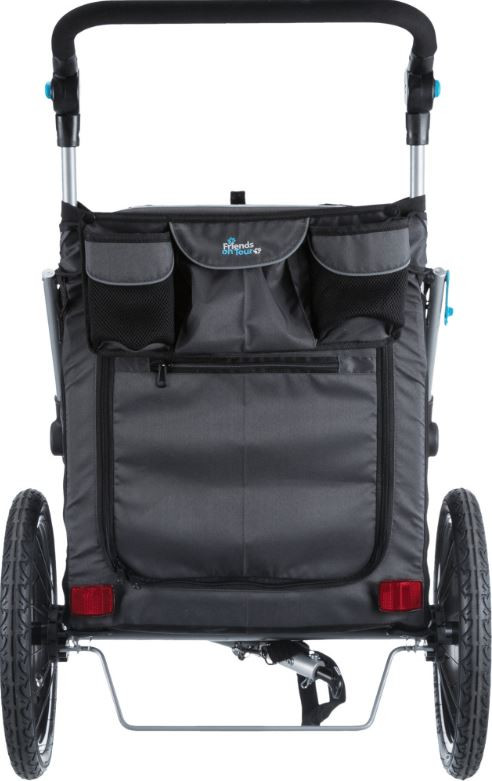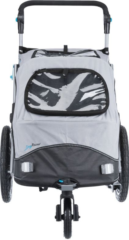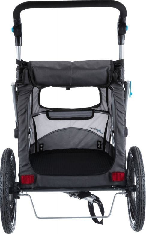 Makkelijk inklapbare hondenfietskar met een veiligheidsvlag en reflectoren. De fietskar is eenvoudig om te bouwen tot jogger. Draagvermogen tot 15, 22 of 30 kg.