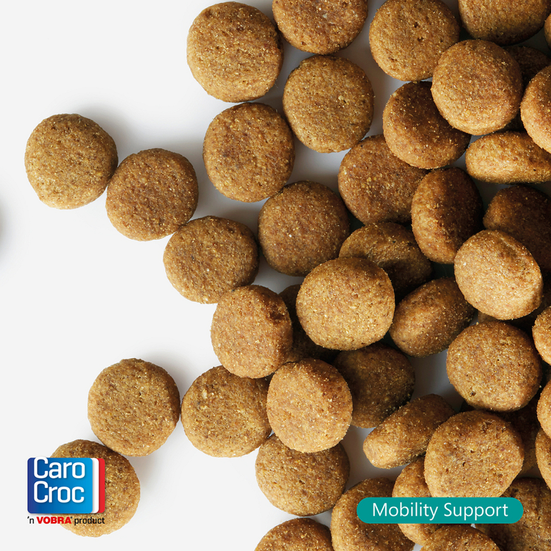 CaroCroc Mobility Support zorgt voor ondersteuning van de gewrichten, waardoor je hond vol energie kan genieten van het leven. De brokken bevatten een hoog gehalte omega 3-vetzuren uit visolie voor een gezonde gewrichtsfunctie. Extra vitamine D en een optimale calcium-fosfor verhouding zorgt voor een gezond skelet. Het extra L-carnitine dat aan de brok is toegevoegd ondersteunt het behoud van een gezonde lichaamsconditie. Ook bevat CaroCroc Mobility Support de essentiële mineralen kalium en magnesium die betrokken zijn bij de samentrekking en ontspanning van de spieren.