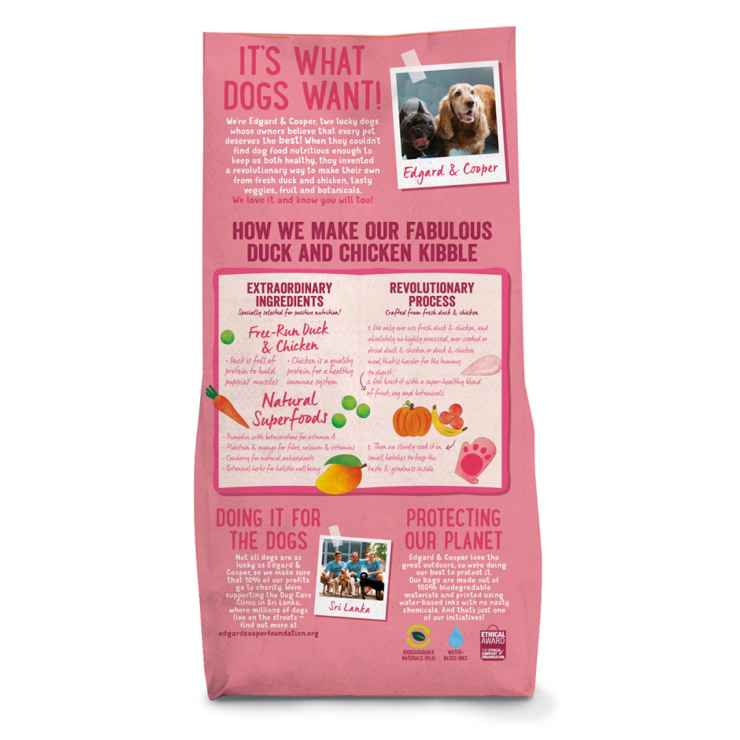 In Edgard & Cooper hondenvoer Puppy scharreleend en scharrelkip wordt enkel verse scharreleend en verse scharrelkip gebruikt en absoluut geen bewerkte, overgare of gedroogde eend en kip of meel van eend of kip dat moeilijker is voor de buikjes om te verteren. Daarnaast wordt er een supergezonde mix van fruit, groenten en kruiden toegevoegd.