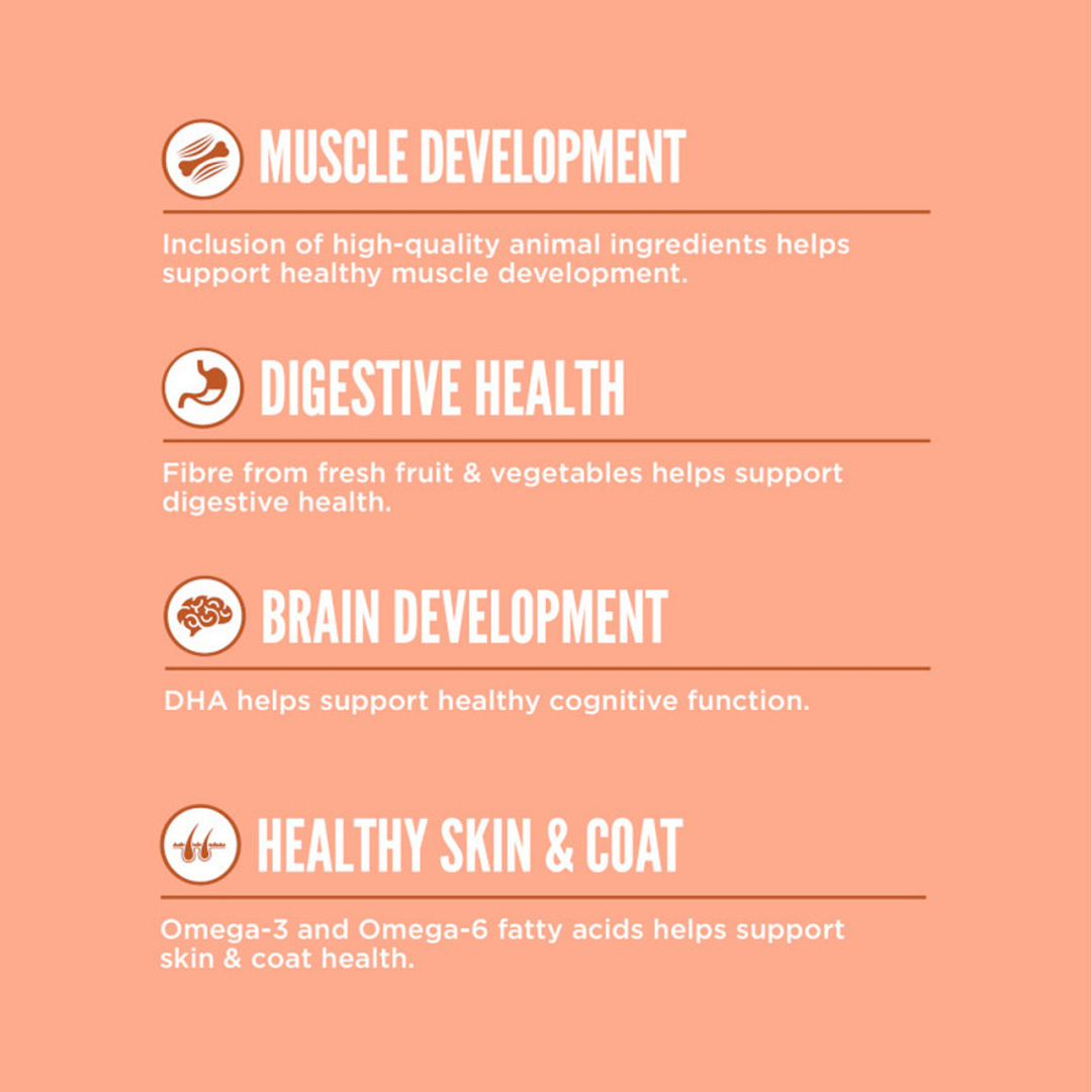 100% natuurlijk, graanvrij puppyvoer met 85% dierlijke ingrediënten.