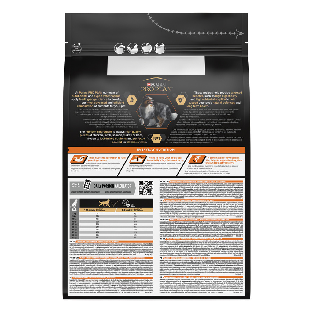 Pro Plan hondenvoer Medium Adult is speciaal samengesteld om volwassen honden een complete en uitgebalanceerde voeding te bieden, die beantwoordt aan hun specifieke behoeften en die hun lichaamsgewicht op peil helpt te houden.