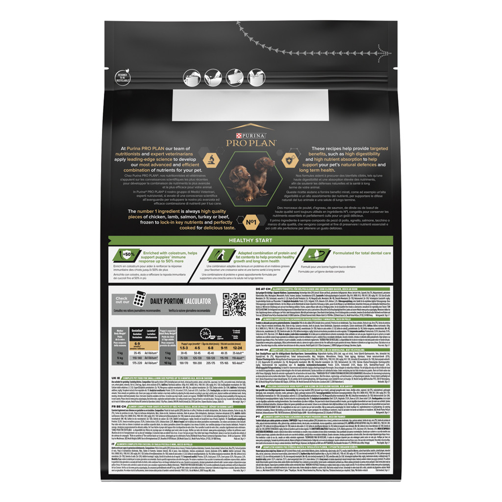 Pro Plan hondenvoer Small & Mini Puppy met Optistart bevat alle voedingsstoffen die een puppy nodig heeft om in zijn behoefte te voorzien. Ook geschikt voor drachtige of zogende teven.