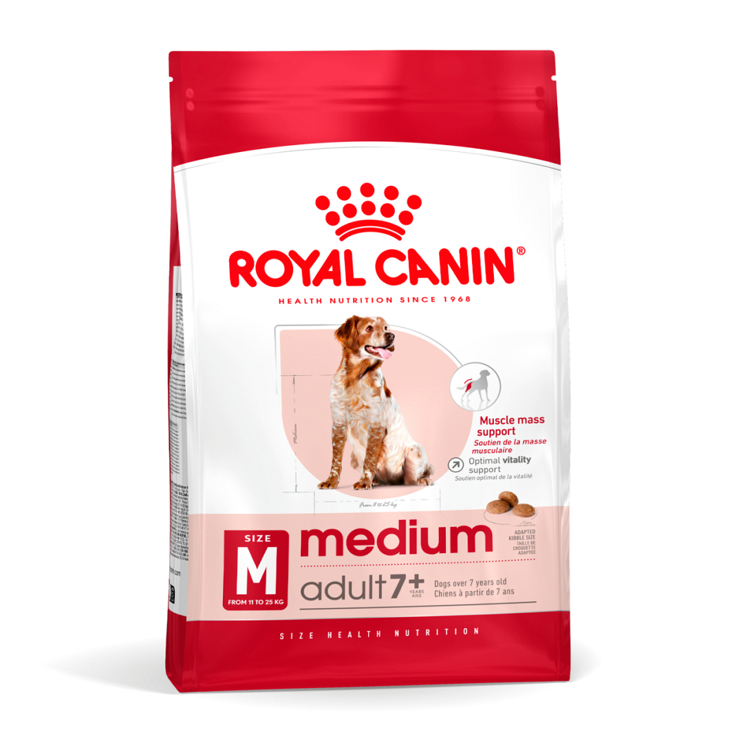 Heb je een middelgrote hond die tussen de 10 en 25 kilo weegt? Dan is het niet zo gek als hij een jaar of 14, 15 wordt. Op een leeftijd van 7 jaar kan de voedingsbehoefte van je hond al veranderen. Medium Adult 7+ is speciaal aangepaste voeding voor de veranderde voedingsbehoefte van je hond.