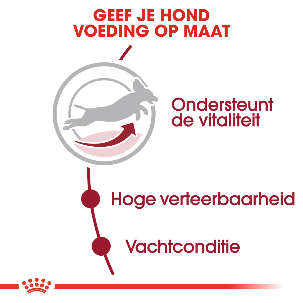 Vaak ziet hij er niet oud uit maar is de veroudering in zijn lichaam echt begonnen. Dan wil je hem eigenlijk het liefst altijd jong houden. Toch neemt zijn afweersysteem neemt af. De vacht kan grijs worden, of soms een beetje mat of ruw. Reuk en smaak van je hond worden minder. En dus de eetlust. Royal Canin Medium Adult 7+ ondersteunt de vitaliteit van je hond. Het helpt een optimale verteerbaarheid te bevorderen en verzorgt huid en vacht.