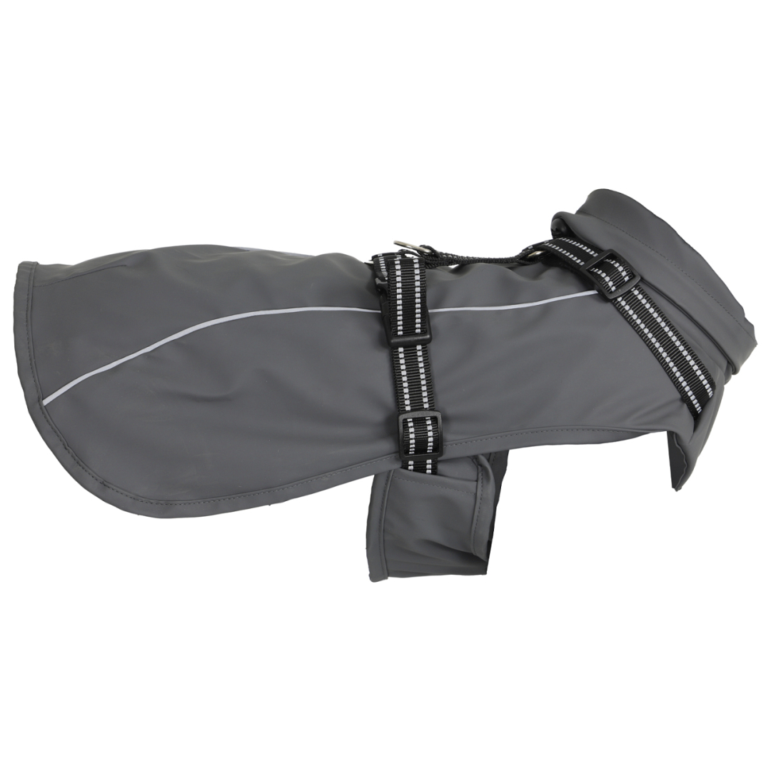 Multifunctionele regenjas met geïntegreerd hondentuig. Wind- en waterdicht.