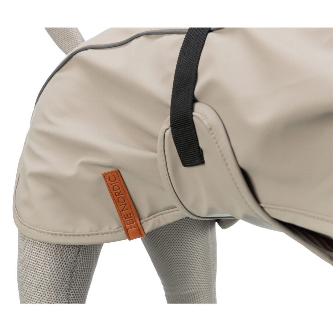 De Be Nordic regenjas is een hondenjas die jouw viervoeter goed beschermd tegen wind en regen. De jas heeft een trekkoord op de kraag en een waterdichte rits voor het aanlijnen aan een tuig. Door de reflecterende elementen is jouw hond ook goed te zien voor het verkeer.