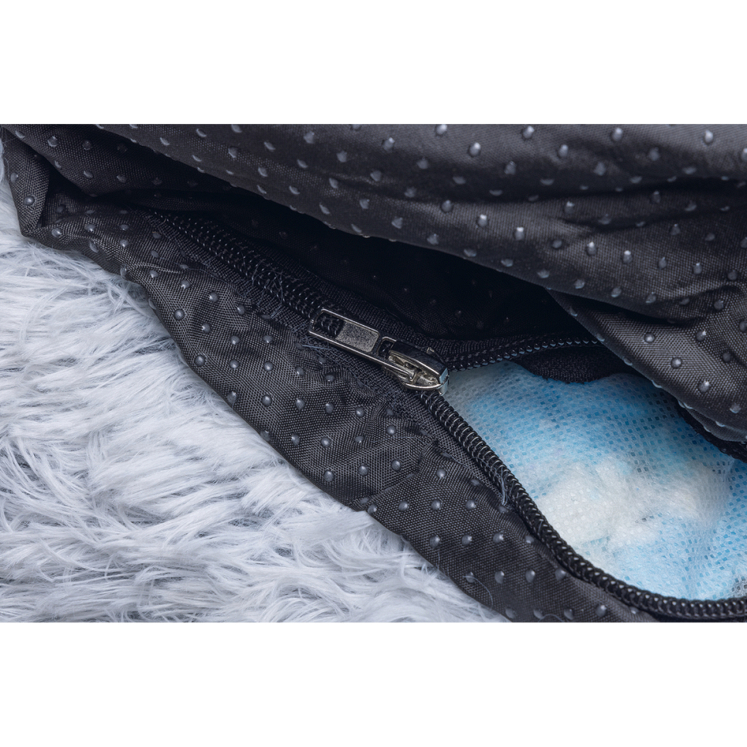 De mand is bekleed met zachte, lange pluche. Door de brede, zachte randen kan jouw hond zijn hoofd laten rusten tijdens het slapen. De onderzijde is voorzien van een antisliplaag, zodat de mand stevig op zijn plek blijft. De hoes is afneembaar dankzij de ritssluiting, waardoor deze gemakkelijk schoon te houden is. De mand beschikt over een waterafstotende binnenhoes om het kussen te beschermen tegen vocht en vuil.