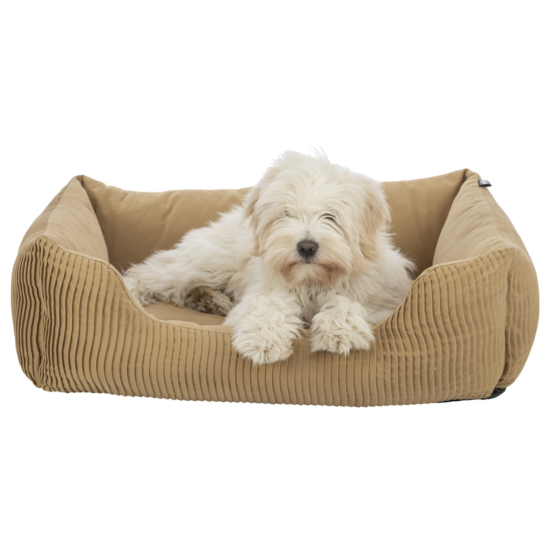 De Trixie hondenmand Marley heeft een mooie hoes van polyester met canvas in het liggegedeelte. Het stevige geïntegreerde kussen zorgt voor een hoog ligcomfort. De hoes is machinewasbaar (daarna strijken). Door de antislipbodem blijft de mand goed op zijn plaats liggen.