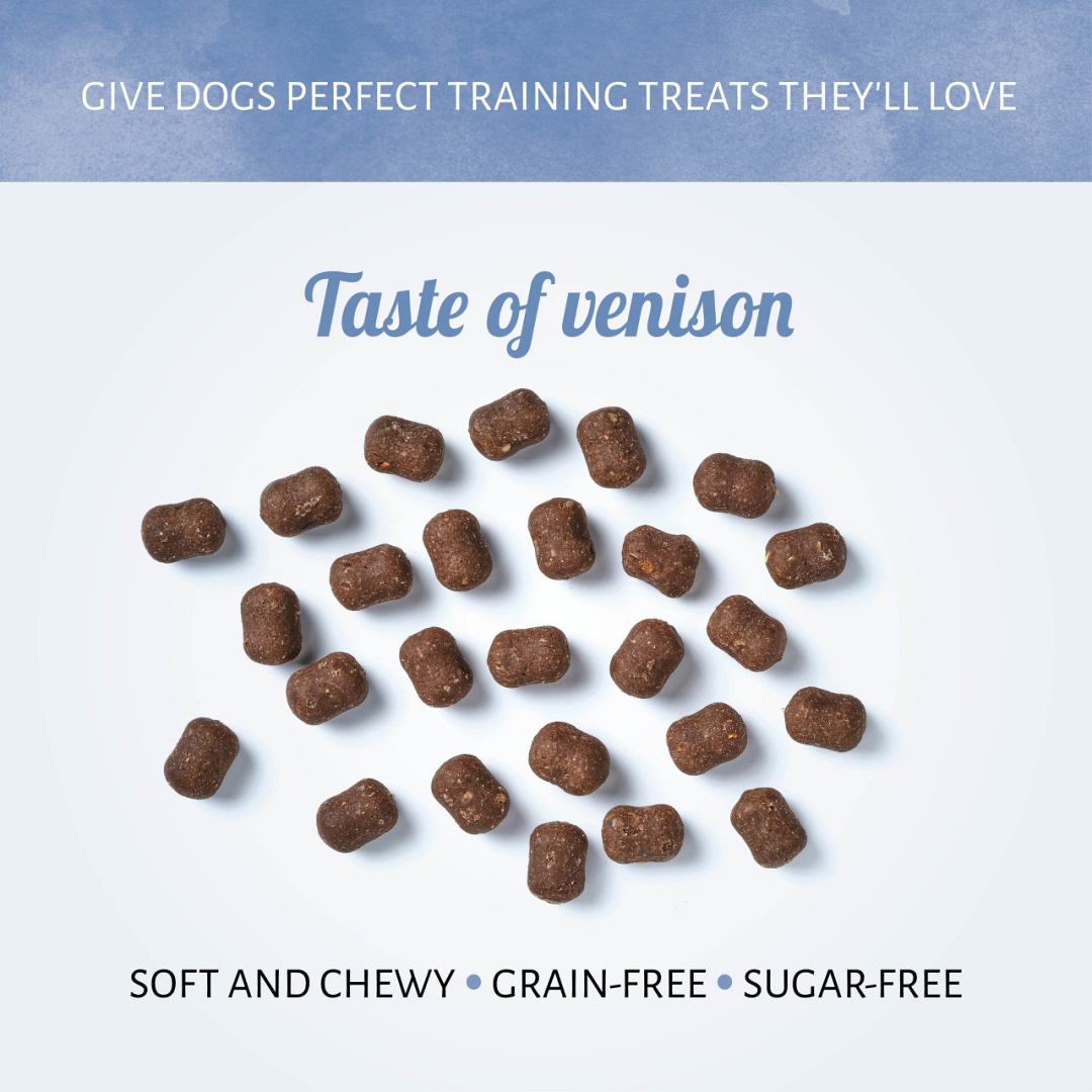 Zachte beloningssnoepjes met hert voor je hond. Gluten- en suikervrij.