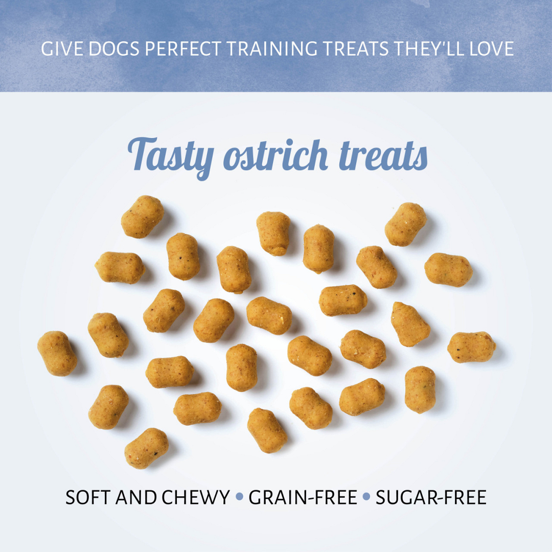 Zachte beloningssnoepjes met struisvogel voor je hond. Gluten- en suikervrij.
