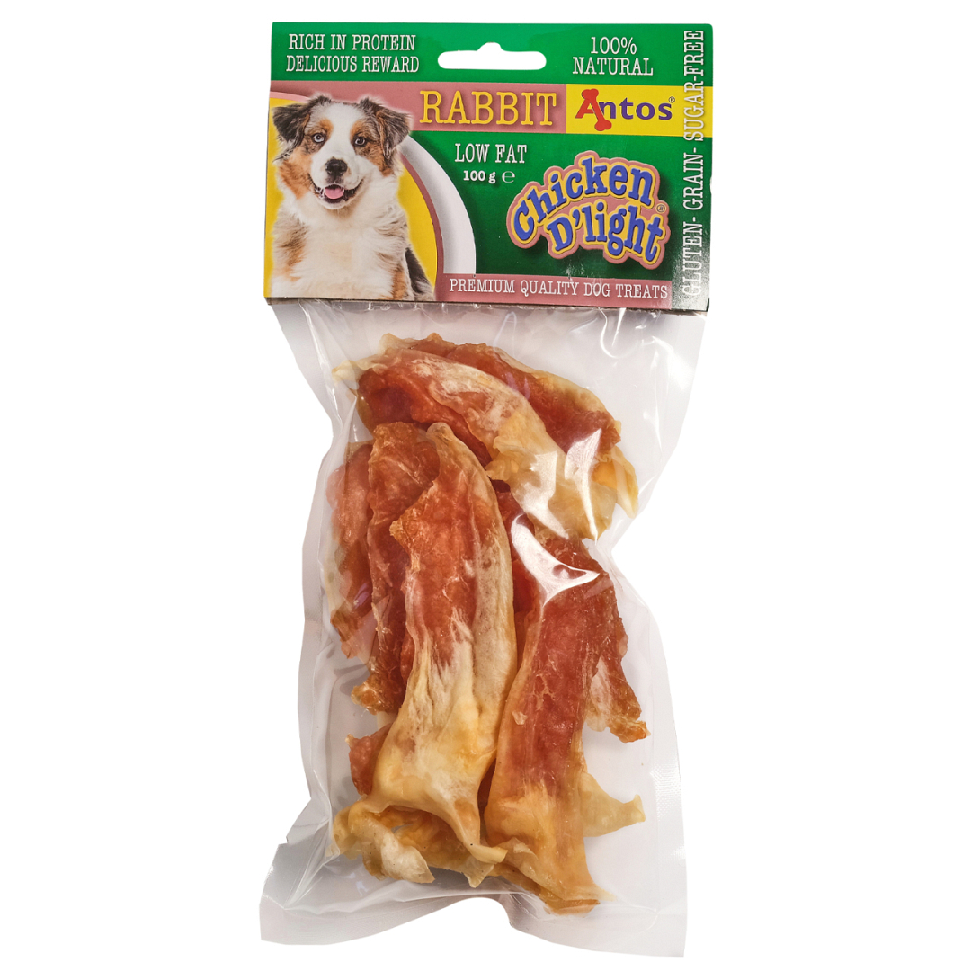 Geef je hond een echte lekkernij met de Antos Chicken D’light Rabbit hondensnacks. Een natuurlijke, heerlijke combinatie van kwaliteitskip in echte konijnenoren. Een gezonde snackkeuze voor alle hondenrassen, ook voor honden die varkens-, rund- of lamseiwitten willen vermijden.