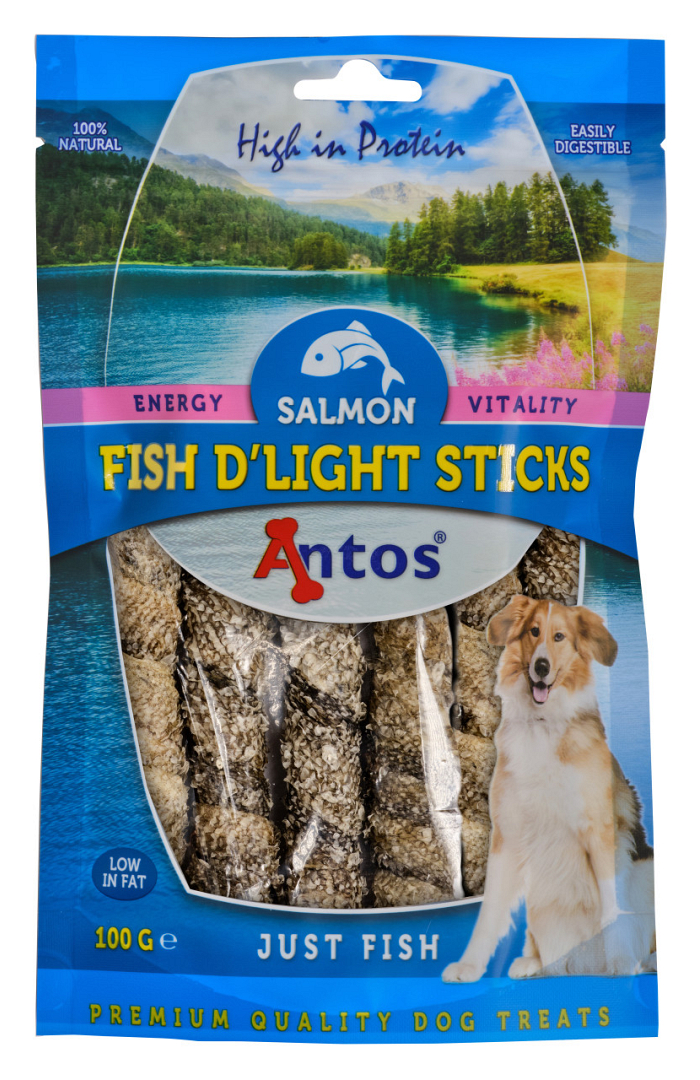 Deze overheerlijke Antos Fish D'Light Salmon Sticks is een gezonde traktatie voor je hond. Het bevat veel omega vetzuren en is daardoor goed voor huid en vacht! 100% natuurlijk en suikervrij.