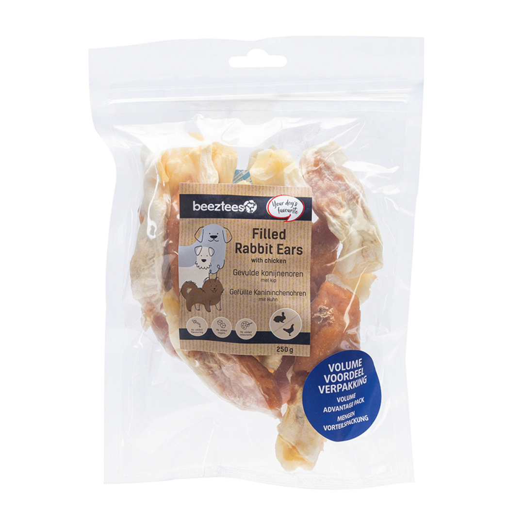 Beeztees Konijnenoren Gevuld met Kip 250 gr