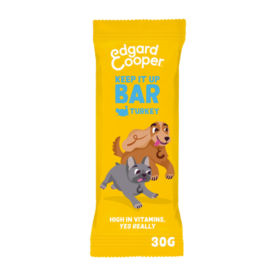 Keep It Up met de Edgard & Cooper reep met kalkoen, een natuurlijke oppepper boordevol vitamines voor honden van alle leeftijden. Deze graanvrije snack ondersteunt het welzijn van je huisdier en is de ideale energiebooster tijdens elk avontuur.
