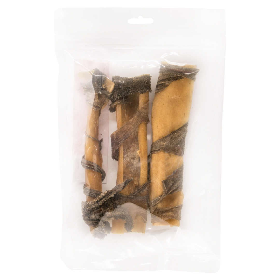Natuurlijke hondensnack van de kophuid van waterbuffel, omwikkeld met pens. Glutenvrij.