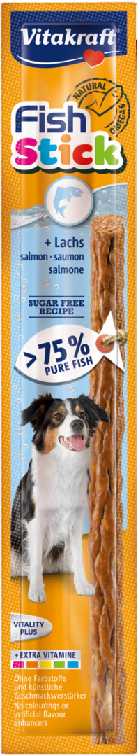 Vitakraft Fish Stick met zalm bevat meer dan 75% pure vis en is daardoor ideaal voor honden met voedselovergevoeligheden.