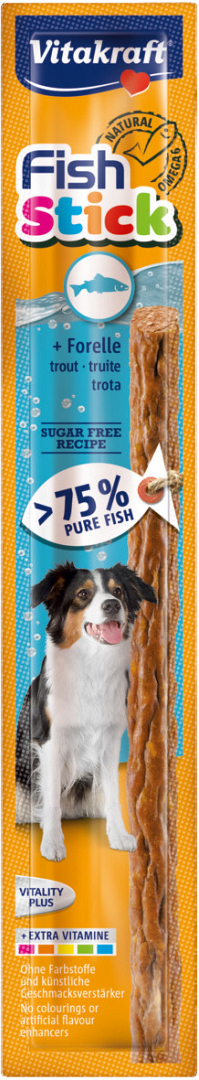 Vitakraft Fish Stick met forel bevat meer dan 75% pure vis en is daardoor ideaal voor honden met voedselovergevoeligheden.