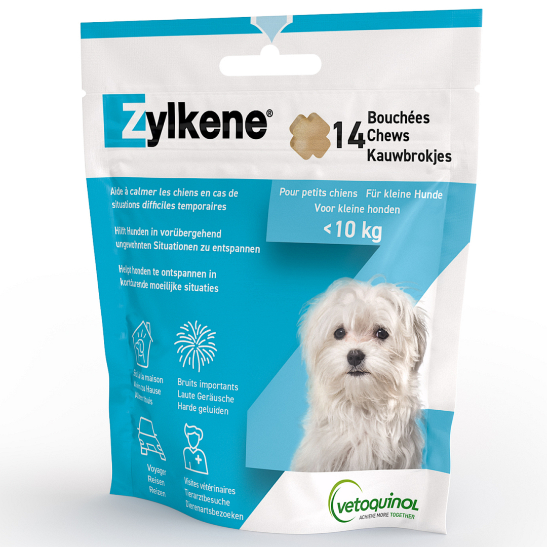 Zylkene Chews Anti Stress is een smakelijk kauwbrokje. Het helpt honden te ontspannen in kortdurende gespannen situaties, zonder te versuffen of risico op gewenning.