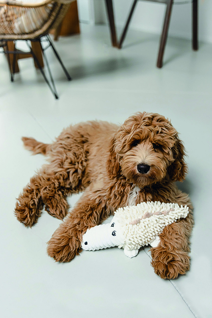 Deze hondenknuffel is heerlijk zacht. Wanneer je deze knuffel voor de hond in de hondenbench of hondenmand plaatst, zal jouw hond er heerlijk tegenaan kruipen.