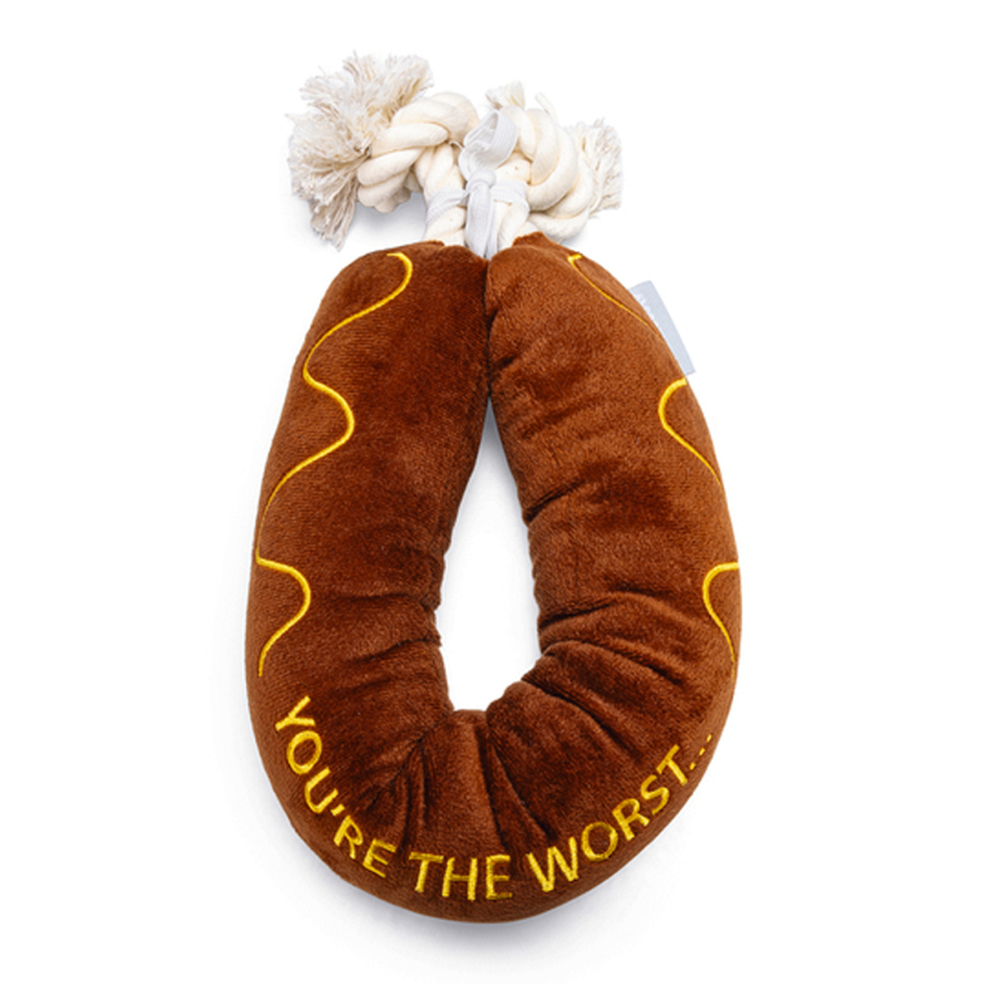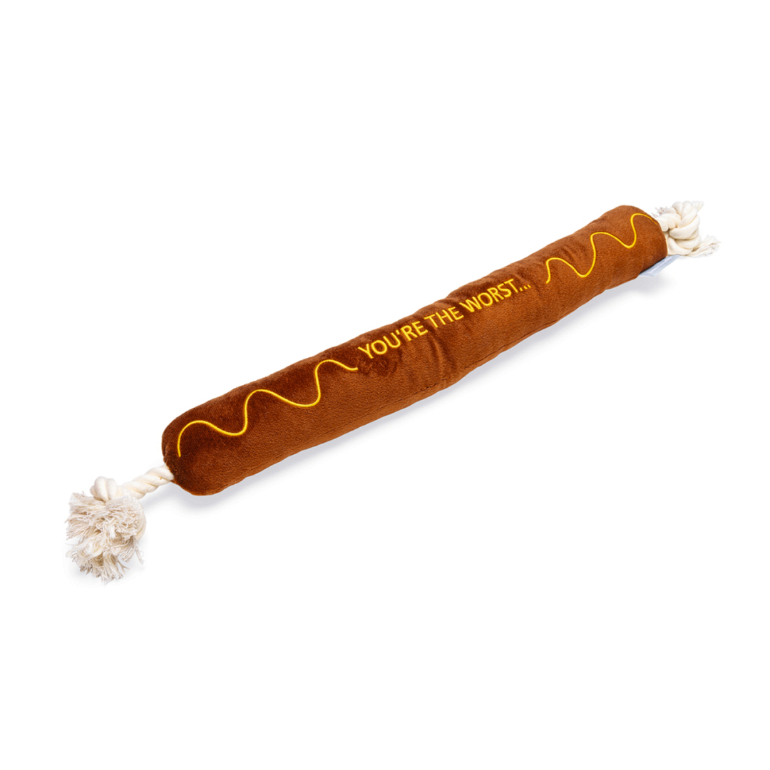 Grappig pluchen worst met touw voor de leukste interactieve spelletjes met jouw hond.
