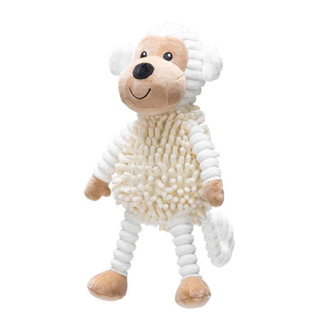 Beeztees Hondenspeelgoed Aap Jeppe is geschikt voor uren speel- en knuffelplezier. Deze hondenknuffel is heerlijk zacht. Wanneer je deze knuffel voor de hond in de hondenbench of hondenmand plaatst, zal jouw hond er heerlijk tegenaan kruipen.De gehele knuffel inclusief de vulling, is gemaakt van 100% gerecycled materiaal. Het speeltje bevat geen piep, waardoor het een heerlijk knuffelmaatje is voor jouw hond!