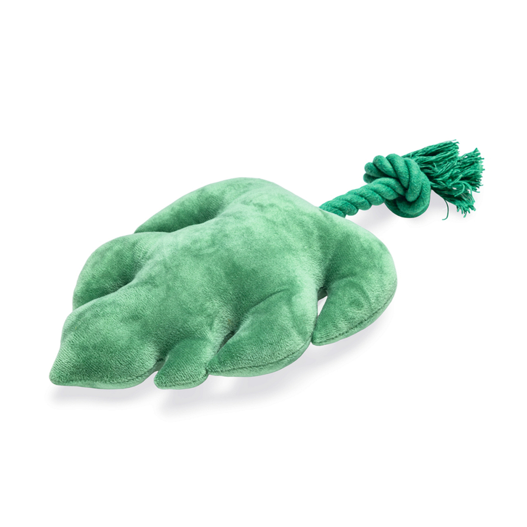Ontdek het avontuurlijke Beeztees hondenspeeltje Jungle Blad voor jouw hond! Dit pluchen hondenspeeltje is ontworpen in de vorm van een blad en biedt jouw trouwe viervoeter eindeloos speelplezier. Het blad is gemaakt van pluche en heeft een flostouw eraan bevestigd, perfect om mee te trekken en te spelen. Het katoenen touw draagt al spelenderwijs bij aan het reinigen van het gebit. De draadjes zullen namelijk tussen de tanden van jouw hond flossen. Geniet samen met je hond van interactieve speelsessies zonder dat er een piepgeluid klinkt, wat dit speelgoed ideaal maakt voor rustige speelmomenten thuis.