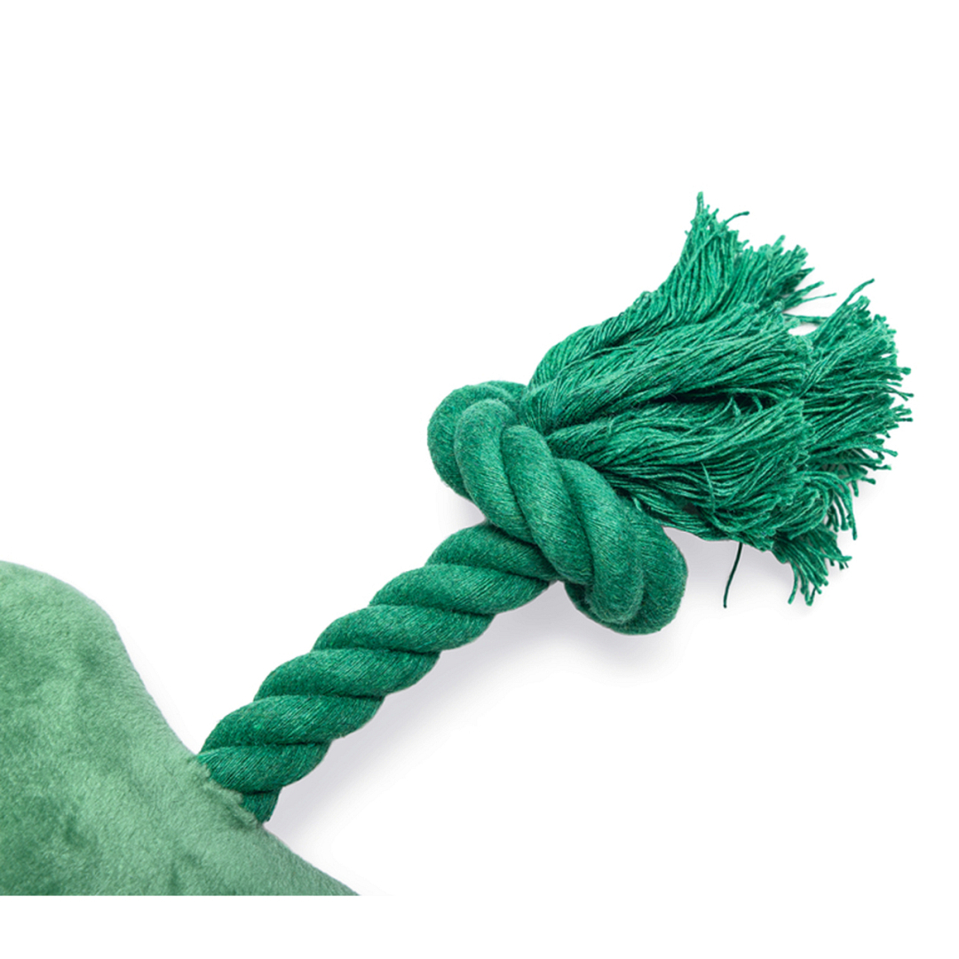 Pluchen hondenspeeltje met flostouw. Zonder piep.