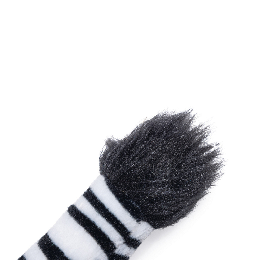 Beeztees hondenspeeltje Zebra Staart brengt het avontuur van de Savanne naar jouw hond! Dit speeltje is ontworpen in de vorm van een zebrastaart en is gemaakt van zacht pluche. Dit maakt het comfortabel voor jouw hond tijdens het spelen. De staart is zonder piep, waardoor jouw hond er in alle rust mee kan spelen.