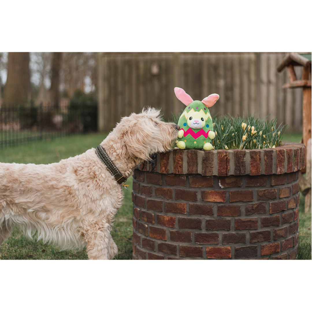 Als er iets bij Pasen past, dan is het wel het Beeztees hondenspeelgoed Konijnenei Titi. Titi is een konijn en paasei in één en daardoor een échte paashaas. Door de vrolijke kleurtjes geeft deze knuffel je interieur ook nog eens een leuk detail. Konijnenei Titi is gemaakt van zacht pluche en bevat geen pieper, dit is wel zo fijn voor de baas.