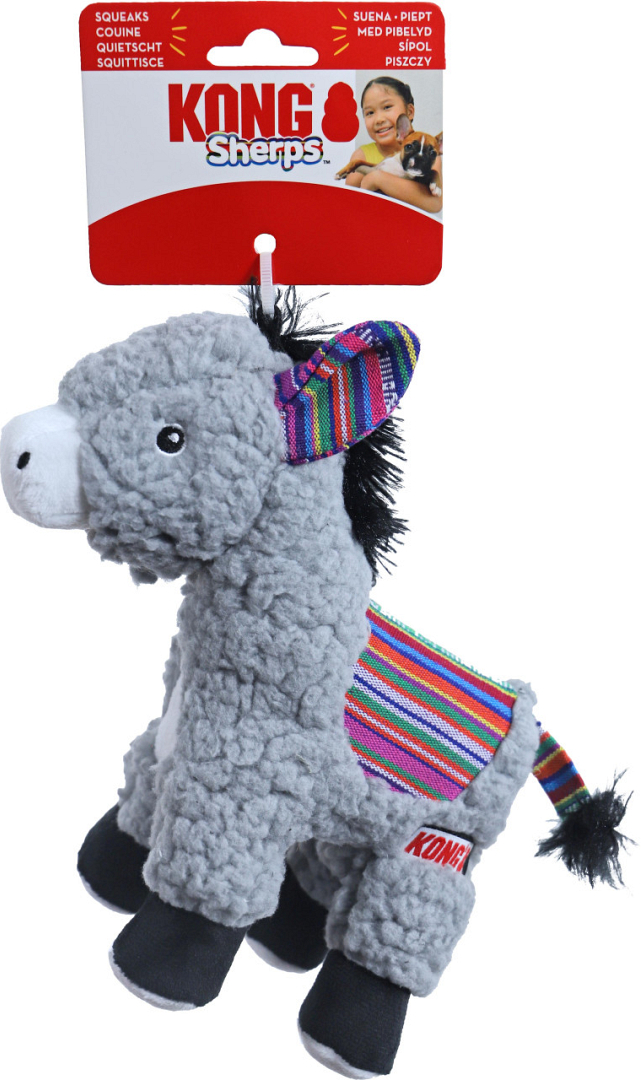 Hondenspeelgoed Kong Sherps Donkey is helemaal bedekt met een onweerstaanbaar zacht pluchen materiaal voor de essentiële knuffels bij elke speelsessie.