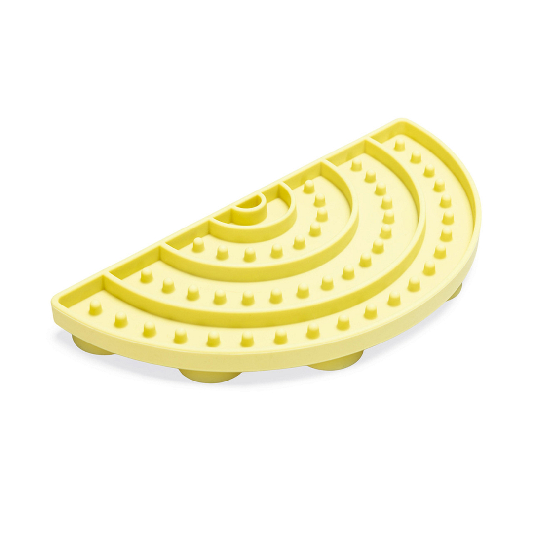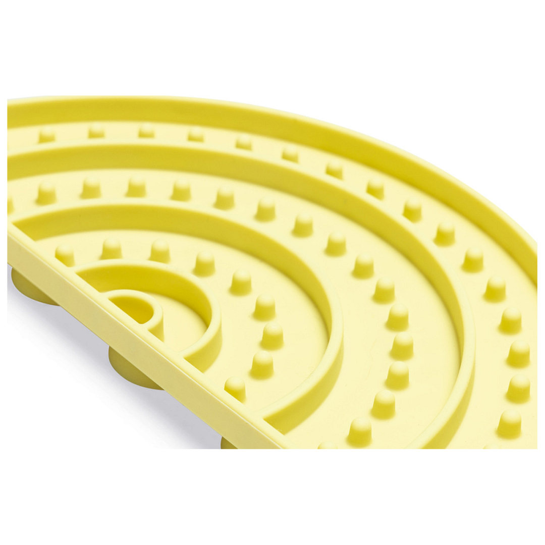 Maak eten leuk met Beeztees Puppy Likmat Regenboog Sem. Deze siliconen likmat in de vorm van een regenboog brengt plezier en smaak samen op een manier waar jouw puppy dol op zal zijn. Je kunt zijn of haar favoriete puppyvoeding op de mat smeren. Door het patroon van de, zal het eten in de uitsparingen gaan zitten, waardoor het voor jouw puppy een uitdaging wordt om zijn diner te nuttigen. De mat kan bovendien gebruikt worden om jouw pup aan te leren niet te schrokken.
