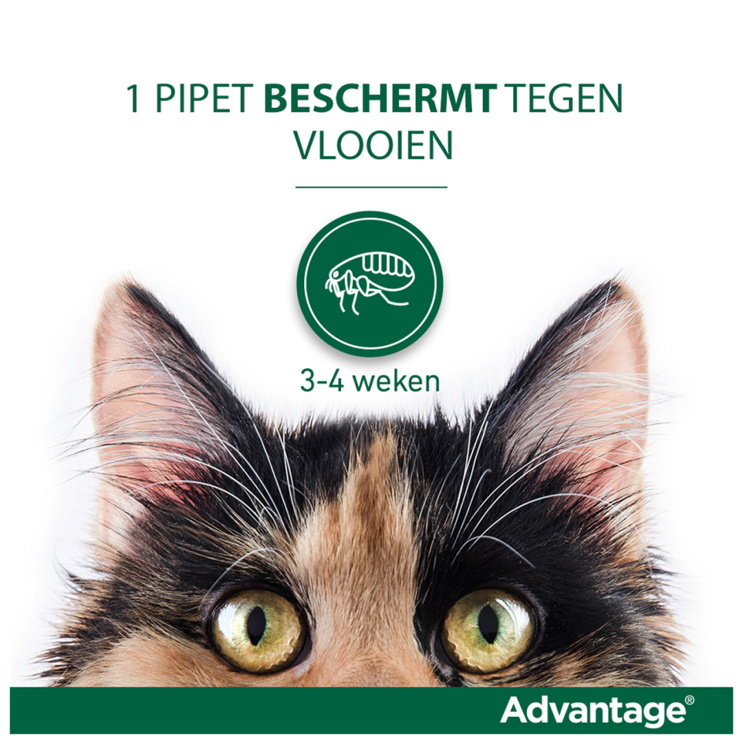 Advantage kat 40 behandelt jouw kat tegen vlooien en voorkomt herbesmetting gedurende 3 tot 4 weken. Advantage is een snelwerkend middel dat vlooien doodt. Advantage kat 40 is geschikt voor katten tot 4 kilogram. Als jouw kat vaak krabt, bijt of likt, kan het zijn dat ze een vlooienplaag hebben. Vlooien hechten zich aan de huid van jouw huisdier en drinken hun bloed. Ze kunnen zich snel verspreiden, dus hoe eerder je ze aanpakt, hoe beter!