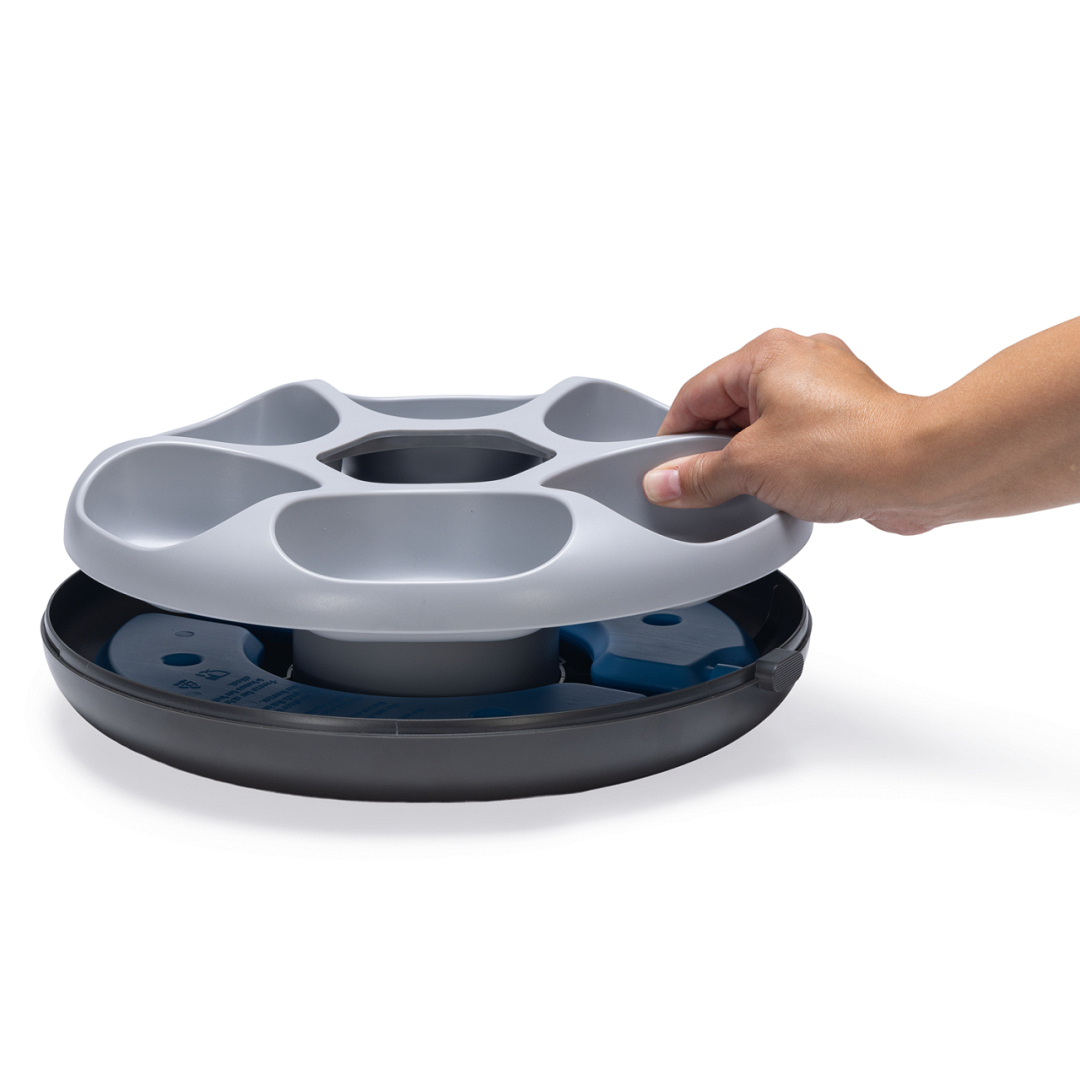 Beeztees automatische voerbak Onni is de ideale automatische voerbak voor katten en kleine honden. Met een capaciteit van 6 bakjes van 180 ml biedt deze voerautomaat ruimte tot 6 maaltijden per dag. Deze voerautomaat is ontworpen voor zowel nat- als droogvoer. Het wordt geleverd met 2 uitneembare koelelementen die in de vriezer kunnen worden geplaatst en het voer tot wel 24 uur vers houden. De voerautomaat is ontworpen voor eenvoudig onderhoud 90% van de onderdelen zijn demonteerbaar en kunnen in de vaatwasser worden gereinigd, met uitzondering van de hoofdunit. De voerbak werkt op een USB-oplaadbare 3600 mAh lithiumbatterij, die na 6-8 uur opladen tot 30 dagen meegaat. Een handige oplaadindicator waarschuwt je wanneer de batterij bijna leeg is.