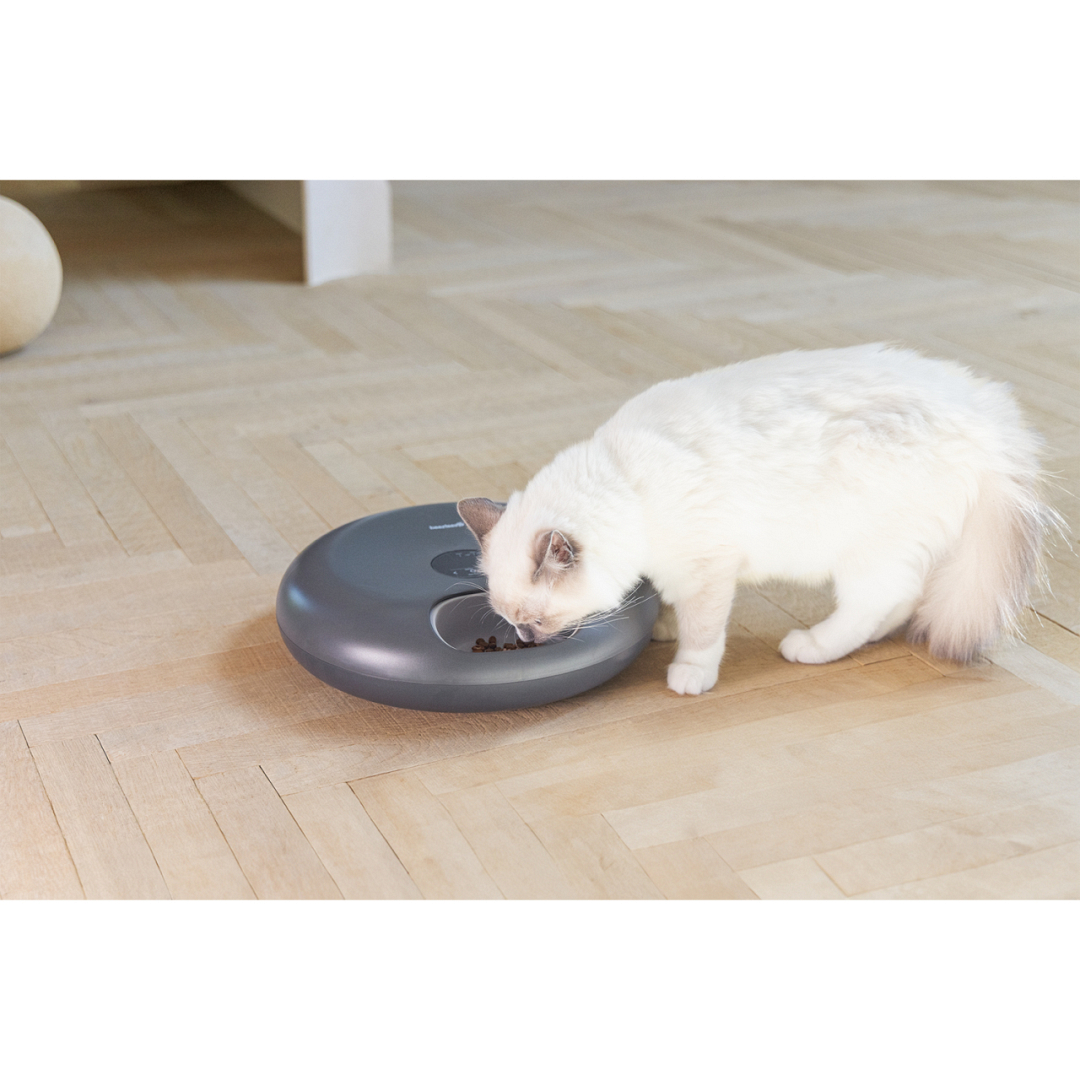 Automatische voerbak voor kat of kleine hond. Geschikt voor zowel droog- als natvoer en tot 6 maaltijden per dag.