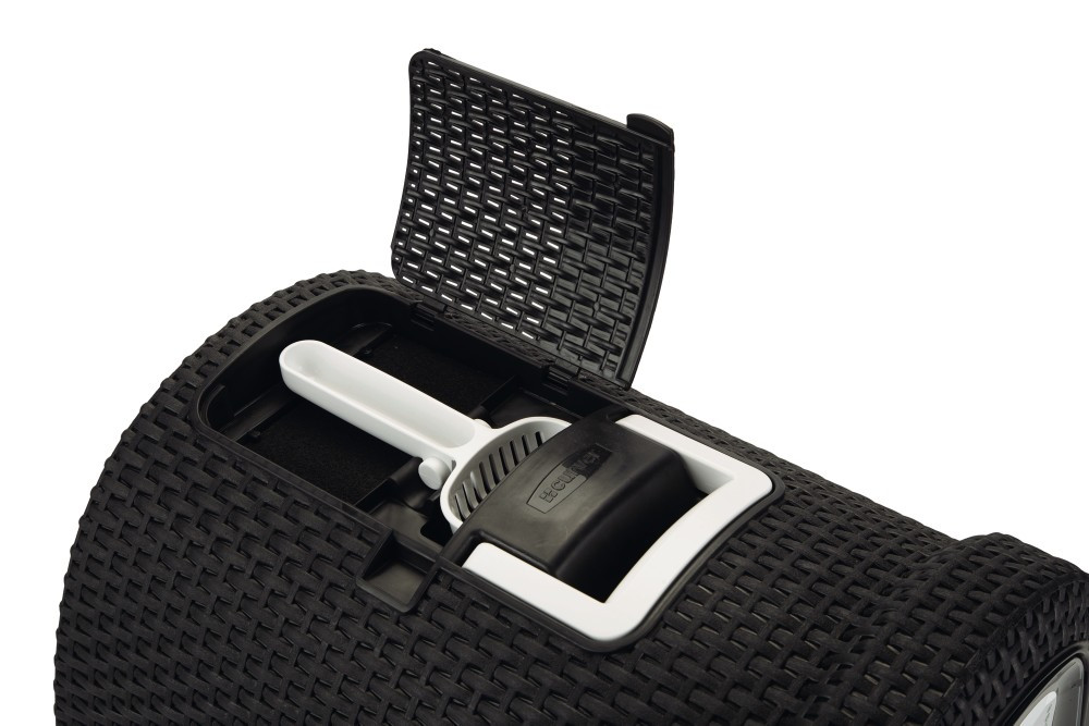 Een prachtig afgewerkte rotan kunststof kattenbak van Curver. Niet alleen een lust voor het oog maar ook zeer gemakkelijk in gebruik.