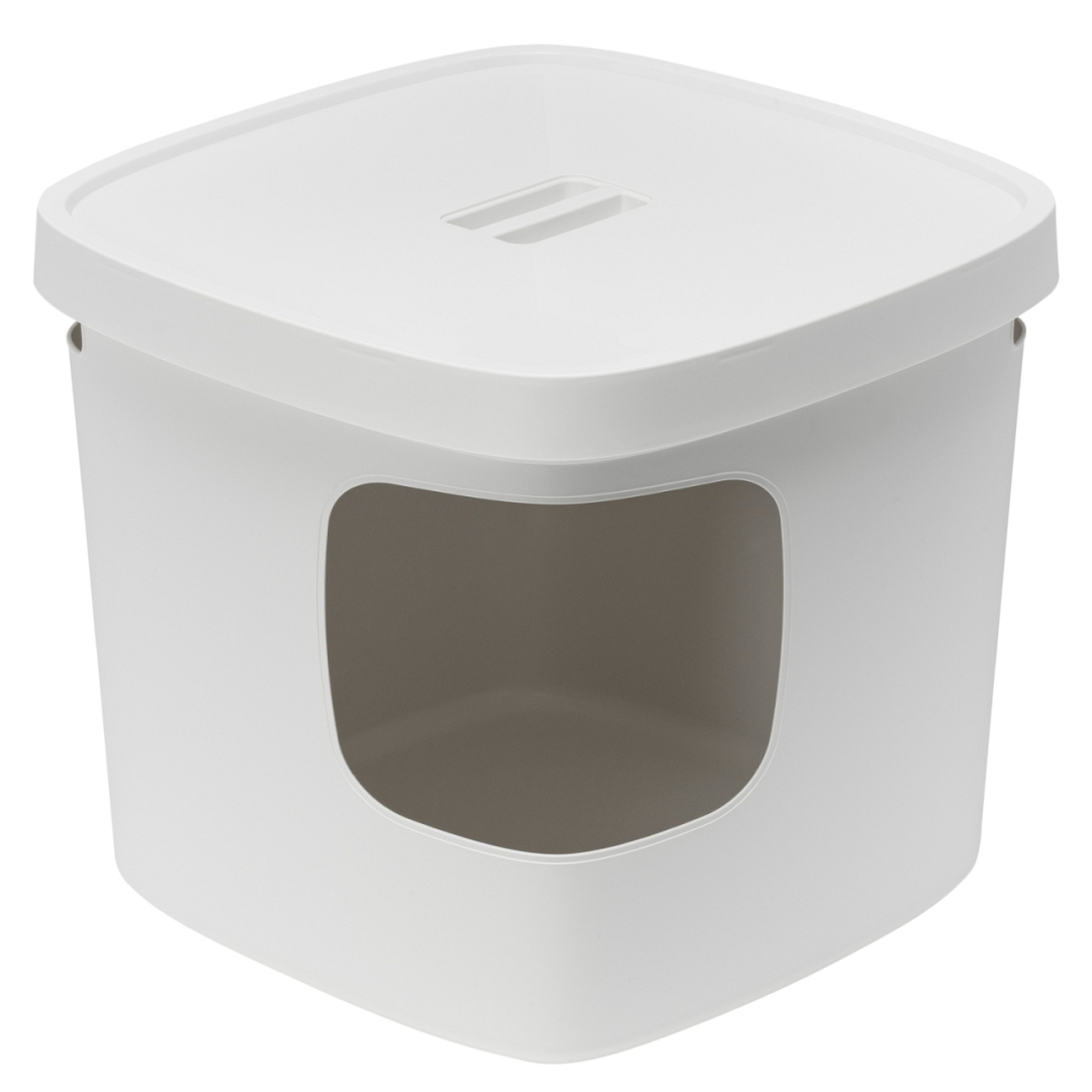 Vierkante kattenbak met hoekingang. Ook geschikt voor grotere katten.