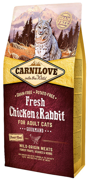 Katten zijn unieke en onafhankelijke wezens, vleeseters en volbloed roofdieren wiens levenswijze wordt bepaald door een sterk jachtinstinct. Carnilove Fresh Chicken & Rabbit is samengesteld met respect voor de natuurwetten en biedt uw kat een uitgebalanceerde voeding, rijk aan vers vlees gecombineerd met diverse groenten, bessen en kruiden. Terugkeren naar een natuurlijk dieet ondersteunt een gezonde spijsvertering en helpt een optimale fysieke conditie te behouden. De hoogwaardige, smaakvolle ingrediënten zijn onweerstaanbaar voor zelfs de meest kieskeurige kattenliefhebbers.