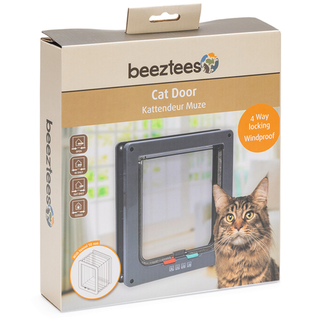 Het Beeztees kattenluik Muze geeft jouw kat de mogelijkheid om zelf het huis uit of in te gaan. Deze kattendeur heeft 4 standen: open, alleen in, alleen uit of gesloten. De deur bevat een transparante geruisloze flap die sluit door middel van een magneet. Deze houdt de flap gesloten voor wind, zelfs in een open stand. De borstel zorgt ervoor dat het luik volledig is afgesloten.