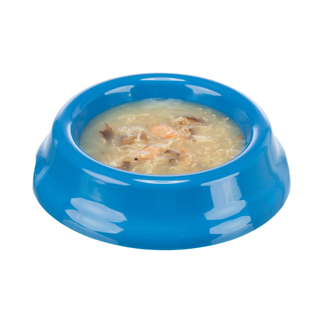 Trixie Salmon Soup met kip & garnalen is een vloeibare snack met een vleesgehalte van 13% en een visgehalte van 6%. Met taurine, taurine ondersteunt het gezichtsvermogen en voorkomt nadelige gevolgen door tekorten.