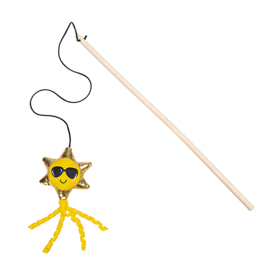 Maak samen uren speelplezier met de Beeztees kattenhengel Zomer. Deze kattenhengel heeft één van de drie zomerse figuurtjes: een ijsje, een zon of een watermeloen. Elk figuurtje heeft een vrolijk zomerthema, wat het extra leuk maakt om samen met je kat te spelen. De kleurrijke figuurtjes aan de hengel wippen en wiebelen speels heen en weer, wat het voor je kat onweerstaanbaar maakt om te proberen ze te vangen. Het ijsje en de watermeloen zijn voorzien van een speels veertje dat extra speelplezier toevoegt. De kattenhengel Zomer brengt de zonnige sfeer van de zomer in huis en zorgt voor interactief speelplezier. De hengel is uitgerust met een stokje gemaakt van hout en een zacht pluchen figuurtje, perfect voor veilig en comfortabel spel.