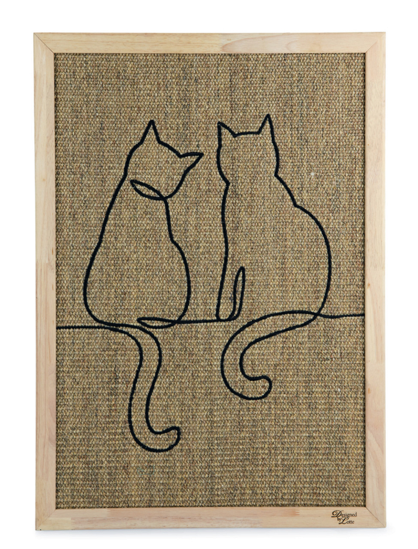 Krabplank met sisal mat en rubberhout. Extra leuk door de afbeelding van twee katten. Afm: 70 x 50 x 2 cm