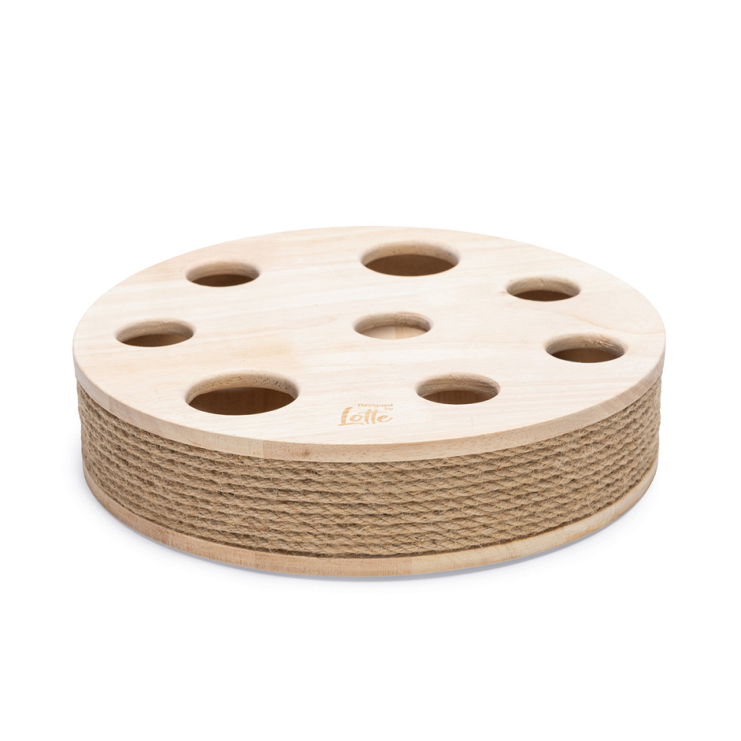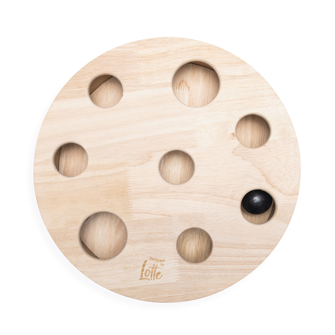 Designed by Lotte kattenspeeltje Raya zorgt ervoor dat jouw kat zichzelf uren kan vermaken. Dit prachtige kattenspeeltje, gemaakt van rubberhout, heeft diverse gaatjes aan de bovenzijde. De gaatjes zorgen ervoor dat jouw kat de twee houten balletjes, die verstopt zijn in het speeltje, kan laten bewegen. Jouw kat zal het geweldig vinden om de balletjes te vangen. De natuurlijke look zorgt ervoor dat dit speeltje niet alleen leuk is voor jouw kat, maar dat het ook prachtig staat binnen jouw interieur. Om jouw vloer te beschermen, is dit speeltje voorzien van beschermvoetjes aan de onderkant.